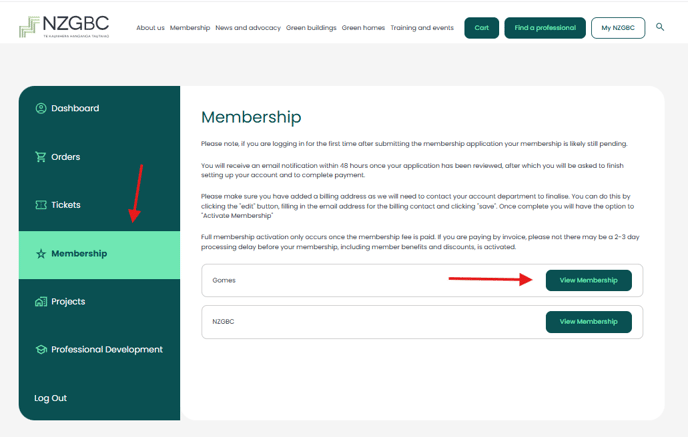 Select the "View membership" on your dashboard.