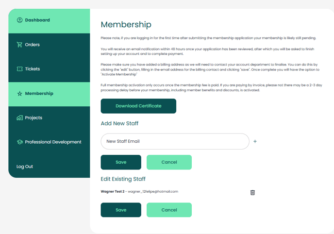 Your membership gives access to staff benefits for all members listed in your account. You can manage your staff list directly from your dashboard.