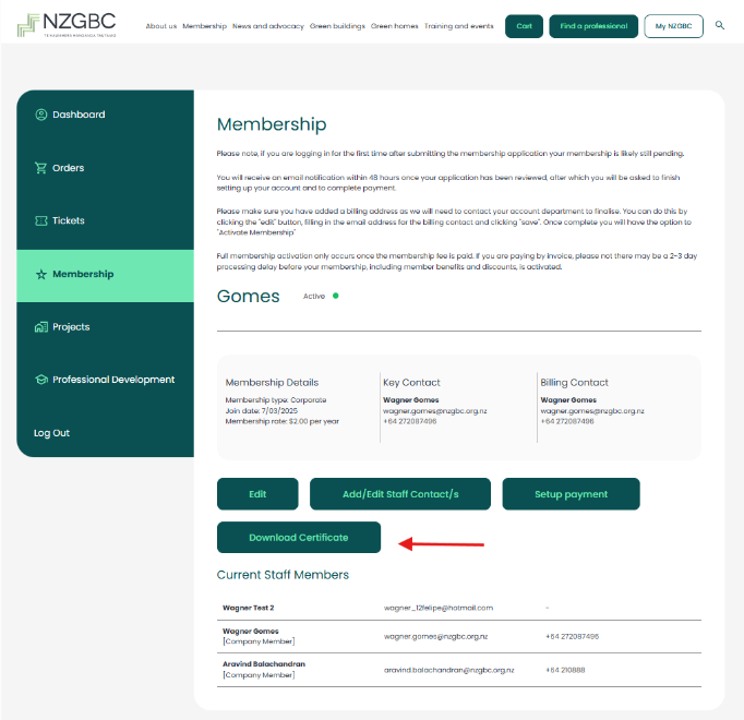 As a member, you can download your NZGBC Membership Certificate directly from your dashboard.